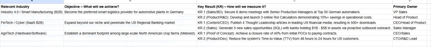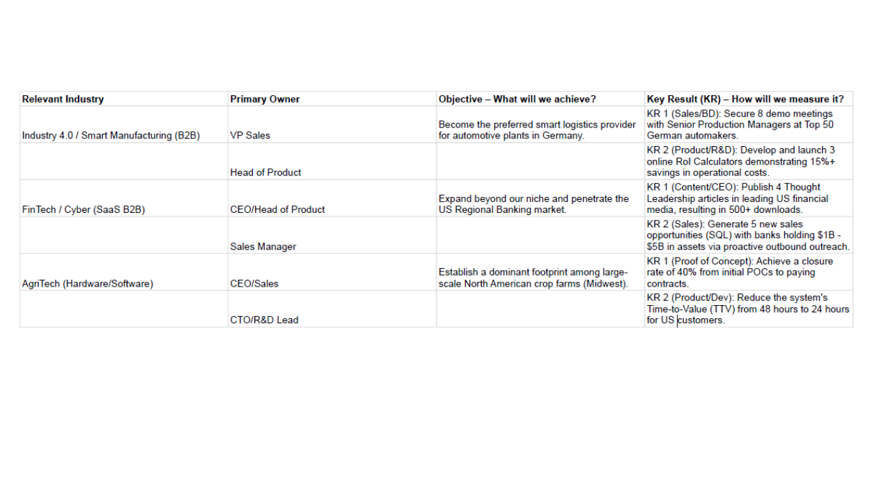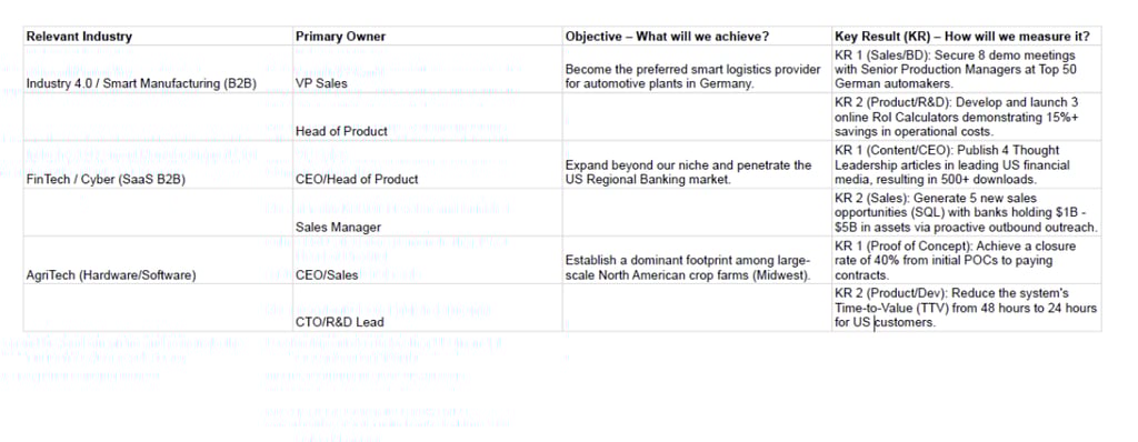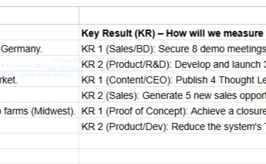 The Power of Key Results (Quantitative Metrics): The KRs are the measurable fuel. They explicitly define what success looks like. They transform the work of R&D, Product, and Sales into measurable global marketing and sales efforts.