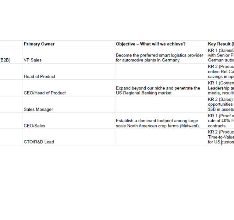 Instead of burning cash on broad, untargeted marketing campaigns, OKR forces the team to define KRs that are hyper-focused sales and marketing activities, each with a single owner:
